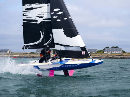 Alors que les foils affolent les compteurs des bateaux de course, de la mini-transat à la Coupe de l’America en passant bien sûr par les 60 pieds Imoca, les 3 jeunes impétrants - ils n’ont alors pas 25 ans – veulent rendre le vol sur l’eau facile et donc accessible à tous. Ambitieux mais pas prétentieux, ils s’adressent à des spécialistes pour les domaines qui relèvent pas de leurs spécialités. C’est donc l’architecte naval Etienne Bertrand, bien connu pour ses plans de Mini, qui signe le dessin du BirdyFish. La largeur de l’étrave n’est d’ailleurs pas sans rappeler les scows de 6.60m que l’architecte a participé à populariser avec succès. Quant aux foils, leur conception a été confiée à un maître en la matière, Jean Baptiste Behm, passé notamment par SEAir. Avec leur forme en J, la portance est maximale lorsqu’ils sont totalement dépliés, tout en restant assez simples à rétracter.