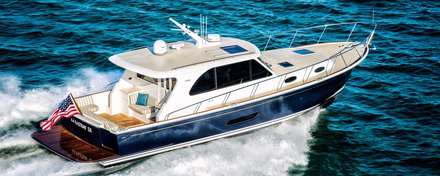 Sa coque modifiée au V profond permet un bon passage dans la vague, une poupe avant-gardiste à surface planante et des bouchains larges inversés offrent un confort et une bonne stabilité lors des manoeuvres. Pour Mark Richards, PDG de Grand Banks, « le nouvel Eastbay offre tout le confort et le style que vous appréciez dans un yacht de style Downeast mais avec des vitesses de croisière pour pousser vos aventures plus vite et plus loin. Cette toute dernière génération est aussi plus légère et plus efficace » conclut-il. A bord du motor-yacht, on retrouve deux moteurs diesel Volvo Penta IPS 600 (soit 435 chevaux chacun) lui permettant d’atteindre environ 20 noeuds en vitesse de croisière et 32 noeuds en pointe. Plutôt rapide pour un Grand Banks !