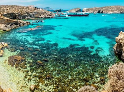 En Méditerrannée se trouve l'île de Malte. Entre les îles de Comino et de Cominotto, vous trouverez le Lagon Bleu. Vraie piscine naturelle, vous vous reposerez non pas sur le sable mais directement sur les rochers. Même en présence de nombreux touristes en période estivale, cet endroit reste un petit coin de paradis.