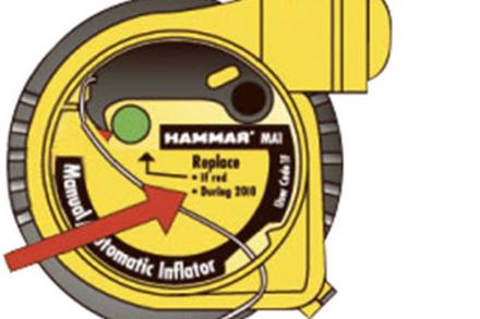 Il n’existe pas de réglementation pour la révision des gilets. L’utilisateur doit donc vérifier régulièrement l’ensemble du gilet et le système de gonflement. En premier, il faut s’assurer que la bouteille de gaz est pleine, ne présente pas de trace de rouille et est bien vissée. Pour les modèles équipés de pastille de sel cette dernière doit être propre et complète. S’il manque du sel ou s’il se désagrège, il faut la changer. Pour les systèmes hydrostatiques, en principe, il y a une date de péremption. Sur les gilets équipés d’une tête automatique Pro-Sensor (Plastimo) un témoin de fonctionnement (vert ou rouge) permet de visualiser facilement si la tête est opérationnelle (vert) ou si la bouteille est percée, dévissée ou partiellement vide (rouge). Les fabricants recommandent une révision en usine ou simplement faite par un agent agréé tous les deux ans. Celui-ci doit regarder l’état général du gilet, gonfler manuellement (sans utiliser la bouteille de gaz) la chambre, s’assurer de son étanchéité et vérifier le système de gonflage (bouteille, tête de percussion, pastille de sel ou hydrostatique). Des points que tout plaisancier doit pouvoir effectuer lui-même. Le seul point délicat est la bouteille de gaz. Si elle ne présente aucun signe extérieur d’usure par exemple de la rouille, il est bien de la peser avec précision pour vérifier la présence de gaz : pour une 100 N le poids est de 24 g, pour 150 N de 33 g et pour 275 N de 60 g. A titre indicatif, une tête de percussion hydrostatique Hammar doit être remplacée tous les 4 à 5 ans. Une tête à pastille de sel est plus sensible. Si le gilet est entreposé dans un endroit sec, ce qui est recommandé, elle n’a pas de raison de se désagréger. S’il est dans un endroit humide, là, il y a risque de désagrègement partiel du sel, ce qui entraine bien souvent de la corrosion au niveau de la bouteille. Si c’est le cas, il faut la remplacer.