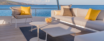 Les plus beaux tissus d'ameublement de qualité supérieure conçus pour une utilisation terrestre en intérieur, ne résistent pas aux conditions particulières que l'on rencontre sur un bateau.© (C) Lagoon