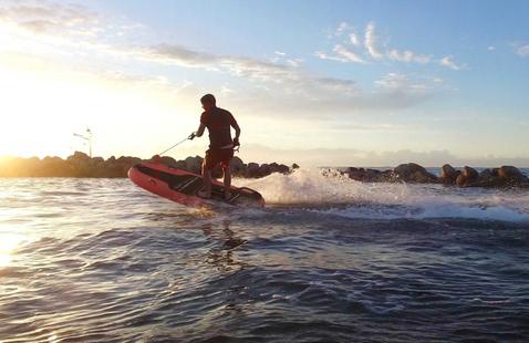 Toujours en avance sur son époque, la société marseillaise a décidé de commercialiser, à partir de 2018, le Flyride, sur les bases du Flyboard mais avec une accessibilité plus grande. Le principe est simple. Il s’agit d’une sorte de « moto volante » conçue pour deux personnes (200 kilos de charge maximum), laquelle est propulsée par la turbine d’un Jet-Ski via un énorme tuyau et deux buses à l’avant. Léger mais résistant, le Flyride se contrôle directement depuis la machine ou, comme avec le flyboard, via une télécommande sans fil en option. Plusieurs niveaux s’offrent à vous, allant du débutant à l’expert. « Tout est géré électroniquement et il suffit d’un simple clic pour passer un simple voire un double looping » explique Francky Zapata. «On a voulu créer un engin plus familial. Cette nouvelle machine est très facile à piloter et va nous ouvrir les portes d’une nouvelle clientèle, allant des enfants au senior » conclut l’expert français des jouets nautiques. Côté tarifs, le Flyride (qui est fabriqué en France) sera commercialisé à partir de 5 400 euros TTC pour l’engin seul à près de 7 200 euros TTC avec le kit complet permettant de le relier au jetski. Le Flyride sera disponible à la vente au printemps prochain et probablement à la location l’été prochain. A n’en pas douter, un engin révolutionnaire qui devrait faire fureur !