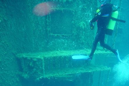 L’épave du MS Zenobia se trouve à 1 mille nautique de la côte, face à Larnaca à Chypre. Elle gît sur le flanc bâbord de 16 mètres à 42 mètres de profondeur. Les conditions de visibilité sont particulièrement bonnes : de 10 à 20 m ! Les courants sont très faibles, ce qui renforcera votre expérience sans le ballotage des profondeurs qui inquiètent tant les plongeurs. Elle est donc accessible dès le niveau 1 de plongée pour observer avec un certain recul la poupe s’enfonçant dans les abîmes, que seuls les niveaux 2, 3 et tecks de plongée ont le droit d’atteindre. Les niveaux 3 pourront nager dans les entrailles de la carcasse du roulier. Des guides ont créé des pistes à suivre, comme des cordeaux d’un musée. Et heureusement, car plus qu’une épave, c’est un véritable labyrinthe de 178 mètres de long et de 23 mètres de maître-bau qui attendent les plus chevronnés d’entre vous.