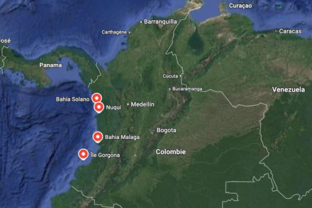 Facilement accessible depuis Cali, cette baie est l’un des principaux lieux de naissance des baleineaux dans le sud-est du Pacifique. Entre 10 et 15 % des naissances de baleines à bosse de cette région y sont enregistrées. Le parc naturel Uramba Bahía Málaga protège cette zone, riche aussi bien en mangroves qu’en espèces marines endémiques.