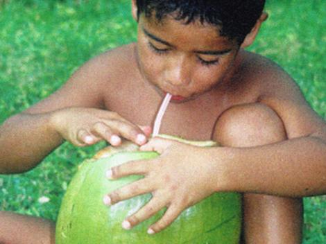 Sous les tropiques le cocotier est un arbre extraordinaire. Les feuilles servent à la construction des maisons, d’ustensiles de cuisine, de tapis pour le sol, de décoration, de chapeaux etc. Le fruit, la noix de coco peut-être utilisé de nombreuses façons et à tous les stades de maturité. Vert, l’eau contenue dans la noix est une boisson rafraichissante, diurétique et stérile qui peut aussi être utilisée pour laver une plaie. En murissant l’amande se transforme et durcit. On peut l’utiliser de nombreuses façons et l’ajouter à de nombreuses préparations, gâteaux – curry – pain et même en fabriquer des pralines.