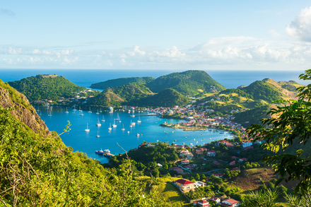 Véritable carte postale vivante, la baie des Saintes séduit immédiatement par ses dégradés de bleu, la rondeur de ses reliefs volcaniques et la douceur de son ambiance insulaire. On y découvre un paysage à la fois simple et spectaculaire, où la mer d’une transparence exceptionnelle contraste avec les maisons colorées et les chemins escarpés menant au sommet du Chameau.