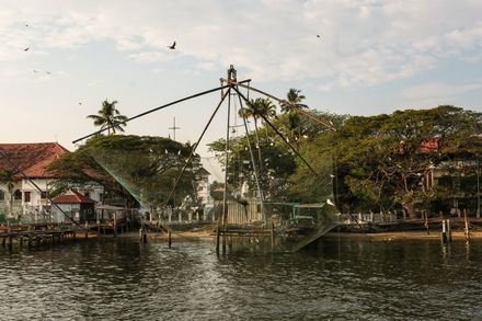 Le cimetière néerlandais, l’un des plus anciens du pays, rappelle la période hollandaise, tandis que la Bishop’s House, édifiée en 1506, témoigne de l’implantation portugaise. Princess Street, avec ses maisons à arcades et ses balcons en bois, concentre les influences européennes qui ont façonné le quartier. En bord de mer, les célèbres filets de pêche chinois, introduits selon la tradition par des commerçants venus d’Asie au XIVe siècle, demeurent l’une des images les plus emblématiques de Kochi. Actionnés par un ingénieux système de contrepoids, ils constituent encore aujourd’hui un spectacle quotidien au coucher du soleil.