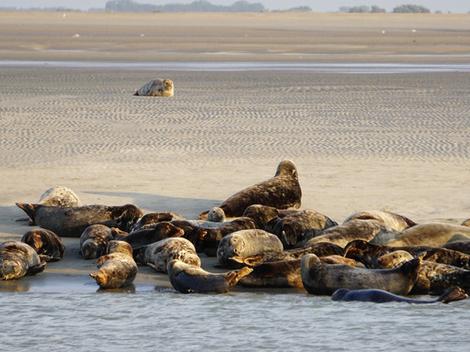 L’un des sites naturels les plus spectaculaires du pays, et un paradis pour la faune marine. Ici, la colonie de phoques veaux-marins cohabite avec celle des phoques gris, offrant parfois des scènes familiales émouvantes sur les bancs de sable. À l’automne, les jeunes apprennent à pêcher seuls, tandis que les bécasseaux variables, huitriers pies et chevaliers gambettes fouillent la vase au gré des marées. À marée haute, il n’est pas rare d’apercevoir les phoques nager lentement près des rives, le museau dépassant de l’eau.