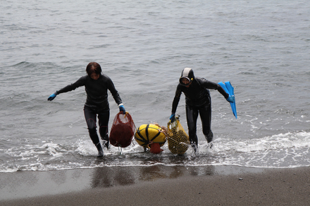 Leur art remonte à plus de deux mille ans. Elles plongent sans bouteille, avec une simple combinaison, un masque et un panier flottant attaché par une corde. Chaque descente est un acte de foi : trente, parfois quatre-vingt-dix secondes de silence, avant de remonter avec une poignée de coquillages et un sifflement aigu - le isobue, ce souffle particulier qu’elles émettent pour réguler leur respiration.