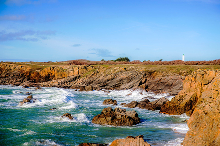 Le sentier côtier, long de 43 kilomètres, devient à cette saison un terrain de jeu idéal. On peut le parcourir en deux ou trois jours, à son rythme, ou s’offrir quelques sections emblématiques. Entre la pointe du But et la plage des Soux, la côte sculptée par les vagues rappelle par endroits les paysages irlandais. Plus au sud, les falaises dominent des criques minuscules où les goélands planent sans effort. À la pointe des Corbeaux, le phare veille sur une mer qui gronde, tandis que le vent soulève les herbes hautes.