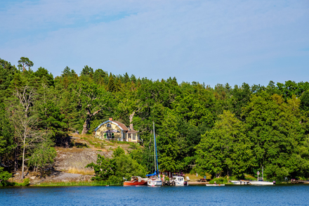 Avec ses 1 140 km2 et ses centaines d’îles, le Mälaren forme un univers nautique complet, comparable à un archipel intérieur. Les bras d’eau s’enchaînent, parfois larges, parfois étroits, avec des passages qui rappellent par moments la navigation côtière. Le décor est typiquement scandinave : falaises de granit, forêts de pins, maisons rouges au bord de l’eau, petites marinas intégrées dans le paysage.
