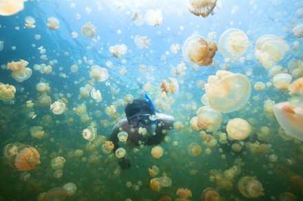 Les méduses ont quelque chose de presque surnaturel : formes arrondies, pulsations régulières, transparence élégante. Dans certaines régions du globe, elles forment des essaims spectaculaires qui attirent plongeurs et nageurs en quête d’expériences singulières. Le fameux Jellyfish Lake aux Palaos en est devenu l’exemple emblématique : des millions de méduses dorées évoluent dans un lac marin isolé, dépourvues de prédateurs, et pendant longtemps considérées comme inoffensives. Beaucoup y voyaient une opportunité unique de nager parmi des milliers de créatures sans risque de piqûre. Un moment décrit comme « irréel », « suspendu », presque méditatif. Mais l’idylle visuelle dissimule une réalité écologique bien plus fragile.