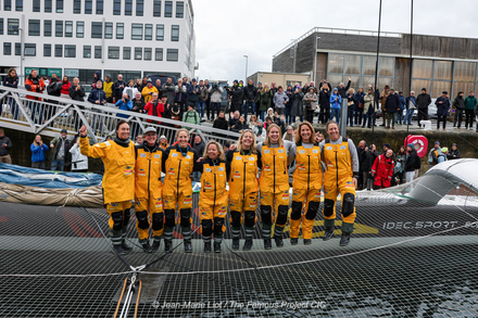 La date et l’heure méritent d’être soulignées, car depuis 1998 et la tentative hélas avortée de la Britannique Tracy Edwards sur le catamaran Royal&Sun Alliance, aucun équipage 100% féminin n’a relevé le gant de cet immense défi. L’Antiboise Alexia Barrier a d’ores et déjà réussi ce tour de force de se présenter au départ, avec un équipage international de 8 navigatrices de 7 nationalités différentes, âgées de 23 à 52 ans, venues de tous les horizons de la planète voile, de l’Olympisme à la course au large, et qui se sont ainsi élancées pour plus de 40 000 km de navigation de tous les dangers via les trois grands caps, Bonne Espérance, Leeuwin et Horn, à l’assaut du plus fabuleux des records à la voile, ce chrono établi il y a déjà 9 ans par Francis Joyon et ses 5 hommes d’équipage, 40 jours, 23 heures et 30 minutes.