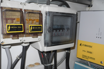 La majorité des appareils portables fonctionnant sur batteries (VHF, GPS, appareil photos, smartphone, etc...) sont fournis avec des chargeurs 230 volts. Pour pouvoir les recharger à bord en navigation, il faut au minimum disposer d’un convertisseur qui transforme le 12 volts continu des batteries en 230 volts alternatif. Pour les appareils ayant une consommation importante (climatisation, chauffage, chargeur de batteries, etc...), seul un groupe électrogène peut fournir un courant suffisant pour les alimenter. Convertisseurs et groupes feront l’objet d’un prochain article. Lorsque l’on est en escale dans un port, il est important de pouvoir disposer du 230 volts, ne serait-ce que pour recharger les batteries, disposer d’un chauffage d’appoint, utiliser de l’outillage électrique, etc.
