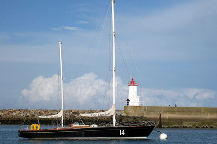 Après la Seconde Guerre mondiale, le bateau est en mauvais état. Beaucoup l’auraient abandonné. Tabarly choisit au contraire de le sauver, au prix d’une restauration complexe et novatrice. Le moulage de la coque en polyester, procédé encore expérimental à l’époque, permet de préserver les formes tout en assurant une nouvelle longévité au voilier.