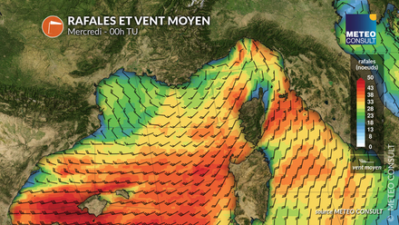 Mercredi, la dépression s’évacue rapidement par l’Italie mais une autre dépression se creuse déjà dans les parages des Baléares et progresse en direction de la Sardaigne en cours de journée avec de fortes conditions de vent. Après une relative accalmie jeudi, une troisième dépression pourrait circuler en Méditerranée vendredi avec un nouvel épisode de vent fort entre le golfe du Lion et la Corse.