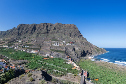 San Sebastián de La Gomera constitue la principale porte d’entrée maritime. Son port accueille les ferries en provenance de Tenerife. Le centre-ville conserve plusieurs édifices historiques liés au passage de Christophe Colomb en 1492, dont la Torre del Conde, l’un des plus anciens bâtiments militaires des Canaries. En dehors de la capitale, l’île s’organise autour de communes à taille humaine. Agulo, perché face à l’océan, offre un panorama spectaculaire sur le Teide à Tenerife. Hermigua conserve un paysage agricole marqué par les bananeraies et les anciennes terrasses cultivées. Valle Gran Rey, à l’ouest, combine plages de sable noir, petits restaurants et ambiance plus animée en fin de journée. Playa de Santiago, au sud, bénéficie d’un climat plus sec et ensoleillé. La Gomera possède également une singularité culturelle forte : le silbo gomero. Ce langage sifflé, inscrit au patrimoine immatériel de l’UNESCO, permettait autrefois de communiquer d’un versant à l’autre des ravins. Il est toujours enseigné dans les écoles et présenté lors d’événements culturels.