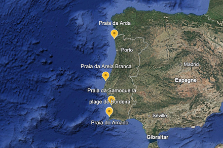 Au nord de Porto, près d’Afife, Praia da Arda demeure relativement discrète, malgré son potentiel. Cette plage ouverte capte efficacement les houles hivernales venues du nord-ouest, souvent plus puissantes dans cette partie du pays. En fin d’hiver, les conditions peuvent y être particulièrement intéressantes : vagues consistantes, parfois creuses, avec plusieurs pics qui se forment le long de la plage selon les bancs de sable. Le vent d’est, fréquent sous régime anticyclonique, vient lisser la surface et structurer les lignes. L’eau y est plus fraîche qu’au sud, l’environnement plus verdoyant, et la fréquentation reste modérée. Cette combinaison donne au surf trip une dimension plus brute, presque nordique, où l’engagement physique et la lecture de la vague prennent toute leur importance.