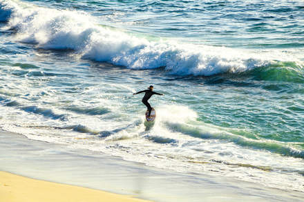 Impossible d’évoquer le skimboard sans parler de Laguna Beach. C’est ici, dans les années 1920, que les maîtres-nageurs locaux auraient commencé à glisser sur des planches en bois pour s’amuser entre deux surveillances. Les plages comme Aliso Beach offrent un shorebreak court, puissant et parfaitement formé. Les vagues cassent près du bord, ce qui permet aux riders expérimentés de lancer leur planche, courir, prendre appui et partir directement à l’assaut de la vague pour des manœuvres aériennes. Le niveau y est souvent élevé, et les compétitions internationales y sont régulières. Pour beaucoup, c’est la Mecque du skimboard.