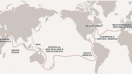 Tout commence à Dubaï, entre désert et futur, là où l’horizon promet déjà l’infini. Puis les lumières dorées du Moyen-Orient laissent place aux parfums de l’Inde, aux lagons des Maldives, à la spiritualité du Sri Lanka. L’Asie du Sud-Est se révèle vibrante et colorée, avant que Bali et Komodo n’ouvrent la voie vers l’immensité de l’Océanie. Dans le Pacifique, vaste et presque irréel, le monde semble ralentir encore à la découverte d’ îles rares, lointaines, parfois inaccessibles autrement. Puis les Amériques surgissent dans un contraste saisissant : falaises chiliennes, héritage andin du Pérou, passage mythique du canal de Panama. Les paysages se transforment, les cultures dialoguent, la mer change de couleur avant un final élégant et solaire en Méditerranée, destination finale : Barcelone...