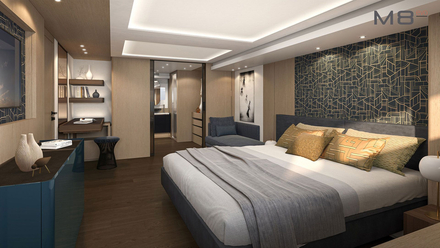 La suite propriétaire figure parmi les évolutions les plus marquantes de cette nouvelle version. Plus spacieuse et plus lumineuse, elle a été conçue pour offrir un niveau de confort digne d’une résidence haut de gamme. L’accès privatif depuis le pont principal renforce le sentiment d’intimité, tandis que les larges vitrages panoramiques ouvrent l’espace sur la mer. Les matériaux, sélectionnés avec soin, participent à créer une atmosphère élégante et apaisante, où chaque détail a été étudié pour favoriser le bien-être à bord. Cette approche traduit une vision moderne du yachting, centrée sur la qualité de vie et la sensation d’espace.