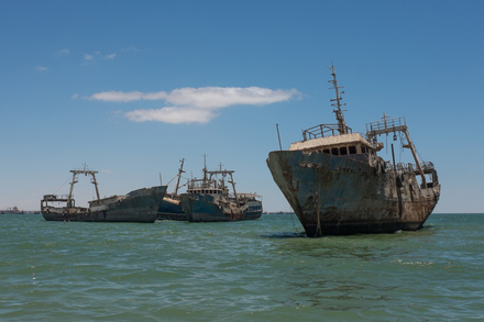 S’il est un lieu qui incarne, à lui seul, l’image du cimetière de navires, c’est bien la baie de Nouadhibou, en Mauritanie. Au fil des décennies, des cargos, des navires de pêche et d’autres unités y ont été laissés sur place, jusqu’à composer l’un des ensembles d’épaves les plus frappants au monde. Le regard se heurte à une accumulation de coques déformées, de ferraille rongée par le sel et de silhouettes à demi englouties, comme si toute une flotte avait été arrêtée en plein effacement.