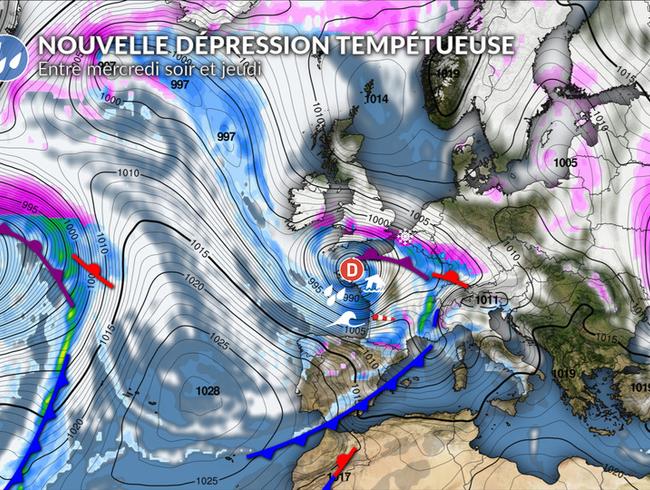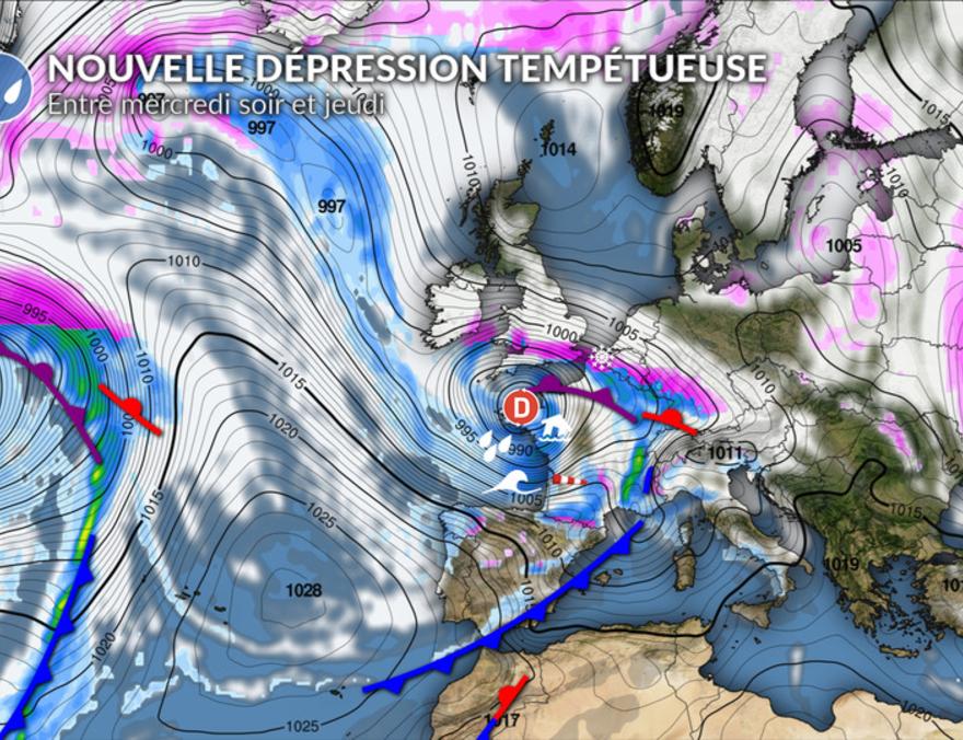 Dans la matinée de jeudi, le fort coup de vent persistera sur une large moitié sud du golfe de Gascogne. Le flux s’orientera progressivement au nord-ouest sur la partie nord du golfe de Gascogne, à l’arrière de la dépression avec un vent qui perdra un peu de son intensité. Toutefois, la masse d’air s’annonce instable avec une traîne active pouvant provoquer de violentes rafales au passage des grains. Ce n’est vraiment qu’en fin de journée de jeudi qu’une atténuation généralisée des vents concernera le bassin atlantique avec l’éloignement de la dépression.