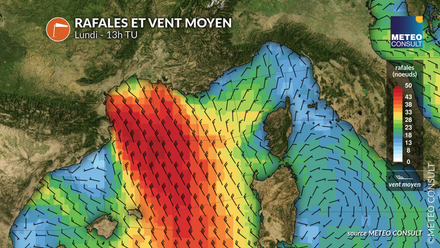 Mistral et tramontane souffleront donc encore à une trentaine de nœuds avec des rafales pouvant encore atteindre 50 nœuds au large. Le vent de nord-est soufflera plus modérément entre Corse et continent.