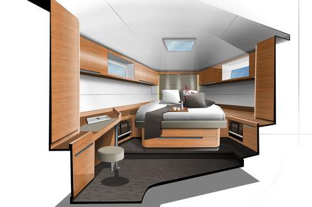 Le très grand cockpit du Centurion 57 a été pensé pour tous les usages, avec beaucoup d’espaces de circulation pour faciliter l’efficacité des manœuvres en équipage. Il offre en outre toute l’assistance nécessaire à la navigation en solitaire. L’accastillage, rigoureusement sélectionné sur des critères de qualité et d’efficacité, s’intègre quant à lui parfaitement dans les lignes épurées du pont. Montée sur vérins, la jupe arrière se transforme en plateforme et bain et facilite l’accès au garage en annexe.