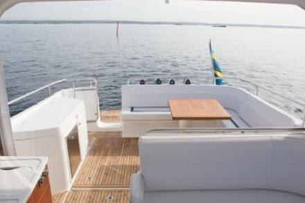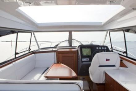 Le bateau, qui sera mis à l’eau en 2013, affiche de beaux volumes extérieurs, avec un grand cockpit arrière, hébergeant une cuisine avec réfrigérateur et barbecue, ainsi qu’une large table rétractable grâce à un système électrique permettant de faire place à un grand bain de soleil idéal pour la détente. Rapide, le Nimbus 24 Nova Hart Top, doté de très bonnes qualités marines, peut atteindre les 40 nœuds en vitesse de pointe. A l’intérieur, on retrouve deux cabines et une salle de bain commune permettant de passer la nuit au mouillage. Fabriqué entièrement en Suède, de la coque aux aménagements intérieurs, le bateau au positionnement haut de gamme a misé sur l’esthétique en privilégiant des matériaux nobles tels que le teck massif, l’inox ou encore l’acajou. « Nimbus a décidé de proposer des tarifs moins élevés qu’avant afin de séduire une clientèle plus large. Par ailleurs, beaucoup d’éléments qui étaient jusqu’alors proposés en option sont désormais intégrés dans la version d’origine du bateau », précise Stéphane Delfino.