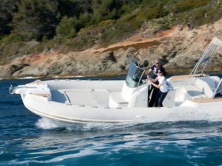 Familial et capable d'accueillir jusqu'à seize personnes, ce nouveau pneumatique dispose d'un bain de soleil de plus de deux mètres de long à l'avant et d'un carré arrière avec table et banquette, ainsi que d'un grand coffre. Maniable dans les petites criques autant que pour les sports nautiques, ce bateau est apprécié sur toutes les côtes pour ses qualités marines.