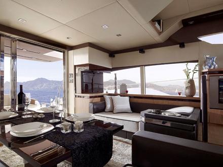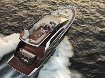 Le Sessa Fly54, unique dans sa catégorie, a été conçu pour répondre aux attentes de propriétaires de tous âges, grâce à ses larges volumes, ses matériaux haut de gamme, le confort à bord et ses performances hors normes. Sa motorisation à transmission IPS et son joystick lui confèrent une grande manœuvrabilité aussi bien en mer qu’au port, tout en occupant un volume restreint. Les espaces intérieurs et extérieurs sont harmonieusement liés les uns aux autres, laissant transparaître une sensation de force et de dynamisme. Quant à lui, le Flybridge, vaste terrasse flottante, s’intègre parfaitement à la ligne générale du bateau. Véritable résidence secondaire dotée de tout le confort nécessaire sur ce type d’embarcation, le Sessa Fly54, subtile alliage de dynamisme, de luxe et de confort, propose deux options à l’acquéreur en ce qui concerne la configuration du salon, une version cuisine-bar et une version dinette plus traditionnelle. De nombreux autres aménagements viennent compléter le design du bateau : un écran plat intégré dans le mobilier, des rideaux rétractables en cabine et un bar mobile sur le pont supérieur. Elégant, ce modèle doté d’une large capacité d’accueil, ne sacrifie pas pour autant les performances. En effet, le Fly54 peut monter à 37 nœuds en vitesse de pointe, dans des conditions de sécurité et de manœuvrabilité maximales.