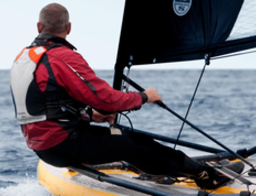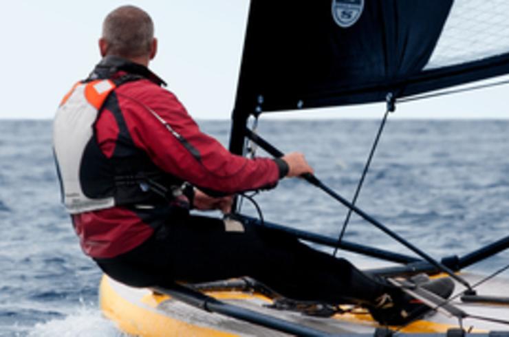 C’est un dériveur mais une fois dégonflé il tient dans deux sacs pour un total de 40 kg. Ce nouveau pneumatique mesure 3,20 mètres avec une voile de 5,50m2. Il sera présenté au Salon Nautique à partir de samedi 8 décembre.