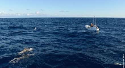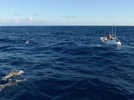 Au début de son périple, Charles Hedrich a croisé beaucoup de petits oiseaux blancs qui essayaient de s’attaquer à son antenne. Puis il a navigué pendant près de deux jours en compagnie d’une sorte de petit moineau. « Il n’avait pas l’air bien alors je le croyais blessé mais il s’est finalement envolé comme si de rien n’était. En plus des dauphins, j’ai croisé ce qui ressemblait à un ananas et qui s’est révélé être une tortue géante. Elle m’a tranquillement regardé passer. » Depuis deux à trois jours, ce sont les oiseaux et les poissons des Antilles qui viennent l’accueillir. « Je réalise que j’approche de la terre car je croise des oiseaux des caraïbes et en filmant sous l’eau, j’ai observé une daurade coryphène d’au moins 1 mètre 30, avec une robe jaune à vert fluo », rapporte Charles Hedrich.
