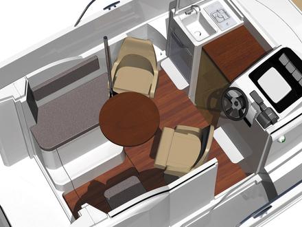 Certains constructeurs ont voulu offrir un bateau mixte, capable d’allier parties de pêche et petite croisière. Après les Antarès de Bénéteau, puis son nouveau Barracuda 7, les Merry Fisher 645 et 755 de Jeanneau, ou encore son récent 855 Marlin, illustrent de cette évolution : carré de cockpit transformable en solarium, dînette intérieure convertible en couchette, couchage double à l'avant... De quoi attirer un public familial.