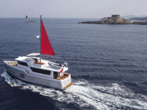 Le grand voyage étant inscrit dans l’ADN du Groupe Grand Large Yachting, il a semblé naturel à Garcia de lancer un bateau à moteur, afin de répondre au mieux aux besoins d’une clientèle qui évolue. « Le Trawler 54, bateau océanique à très basse consommation, est un complément naturel à notre gamme de voiliers, en adéquation avec les envies de notre clientèle traditionnellement tournée vers le grand voyage », explique Benoît Lebizay, Responsable du chantier Garcia, qui, jusqu’à présent, n’était présent que sur le marché des voiliers. « Le bateau a été conçu suivant plusieurs grands axes, l’efficacité énergétique, la navigabilité, le confort, la sécurité, et le design », poursuit-il. A huit nœuds, le Trawler 54, qui pèse 30 tonnes, ne consomme en effet que 12 litres par heure. En vitesse de pointe, il peut atteindre les 11 nœuds. Côté navigabilité, le chantier a importé du monde de la voile des artifices, tels qu’une quille longue, un gréement pour stabiliser le trawler ou des petits quillons anti-roulis, afin de rendre le bateau encore plus marin. Alliant sécurité et confort, le Trawler 54 affiche un style épuré et moderne. « En tant que dernier entrant sur un marché difficile, il nous a semblé important de nous différencier de la concurrence. Nous avons donc opté pour un style plus épuré et moderne, en collaboration avec Franck Darnet Design & Menuiseries et Patrick le Quément », ajoute Benoît Lebizay. Et pour s’adapter encore plus aux besoins d’une clientèle exigeante, le bateau est disponible en versions deux, trois ou quatre cabines, pouvant ainsi accueillir jusqu’à huit personnes à bord en configuration quatre cabines.