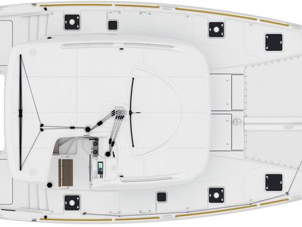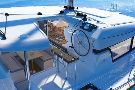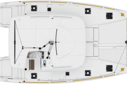 Fortement présent sur les marchés émergents tels que le Brésil, la Chine ou l’Inde, Lagoon poursuit son développement. « L’Europe représente environ la moitié des ventes de Lagoon. Les Etats-Unis, l’Amérique du Sud, l’Asie et l’Australie sont également des marchés importants. Lagoon est beaucoup mieux accepté en Chine que le monocoque. D’ailleurs, c’est la marque du Groupe Bénéteau qui marche le mieux sur le marché asiatique », commente Bruno Belmont, Directeur du Développement Produits de Bénéteau. Signé VPLP pour l’architecture navale, à l’instar de tous les autres modèles de la gamme, et Nauta Design pour les intérieurs, le Lagoon 39 vient s’insérer entre le Lagoon 380 et la nouvelle version S2 du Lagoon 400. Etraves verticales et biseautées, rouf en « sustentation » au dessus du pont, le Lagoon 39 est doté d’une forte personnalité. « Nous avons décidé de reculer le mât pour que le foc puisse passer devant. C’est un gros bouleversement par rapport aux autres catamarans du marché. Lagoon a toujours beaucoup innové », poursuit Bruno Belmont. La nouvelle génération de Lagoon bénéficie de l’expérience inégalée de VPLP dans le domaine des multicoques de course. La position du mât, reculé au niveau du carré, offre ainsi de nouvelles possibilités tant dans le domaine de la performance sous voile que dans celui de la facilité d’utilisation grâce à un génois auto-vireur, de grandes voiles de portant (Code 0 et spinnaker, ndlr), une grand voile à grand ratio d’allongement et une bôme plus courte pour les empannages. En outre, le plan de pont, simple et efficace, permet de contrôler les manœuvres principales depuis le poste de barre, de circuler en toute sécurité sur les larges passavants, et d’embarquer ou de débarquer facilement.