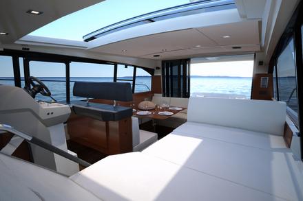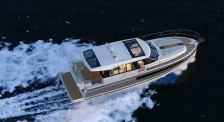 La nouvelle gamme NC s’est imposée rapidement dans l’univers Jeanneau. L’esprit d’origine, animé par le concept « un appartement sur l’eau avec terrasse vue mer » sur un niveau s’est parfaitement illustré sur les NC 9 et NC 11, qui ont suscité un réel enthousiasme en Scandinavie et ailleurs. Fort de son succès, Jeanneau décline aujourd’hui son concept sur le nouveau NC 14, bateau alliant élégance, luxe, confort, beaux volumes et innovation. « La gamme NC (Nordic Concept, ndlr) était à l’origine destinée aux marchés scandinaves. Beaucoup de constructeurs font ce genre de bateaux dans cette région. Ce sont des bateaux parfaitement bien adaptés à la clientèle nordique et aux conditions de navigation en Scandinavie. Mais aujourd’hui, les NC se vendent bien aussi en Méditerranée, même si ce n’était pas leur vocation première. Le NC 14, qui est doté d’une climatisation ultra puissante devrait bien marcher également sur les marchés asiatiques », explique Dieter Gust, fondateur du chantier CNB et Membre du Directoire du Groupe Bénéteau.
