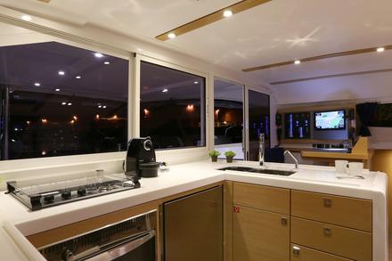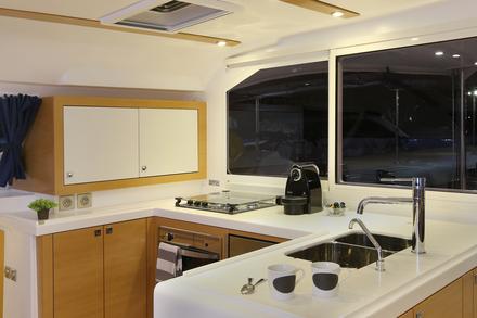 Entièrement customisable, de la sellerie aux équipements intérieurs ou extérieurs, le bateau privilégie les performances grâce à sa carène tendue. « C’est un bateau performant, même dans le mauvais temps. Contrairement à Lagoon, qui mise sur le confort au mouillage avec de beaux volumes intérieurs, nous avons choisi de privilégier les performances, le confort à la mer et le plaisir de la navigation », souligne Bruno Voisard. Elégant de par sa silhouette élancée et ses lignes épurées, le Nautitech 482 dispose d’un intérieur moderne et ergonomique. Le bateau est doté d’une cuisine fonctionnelle, de cabines lumineuses aérées, et propose des finitions de haute qualité afin d’apporter une touche luxueuse au bateau. Libre au propriétaire de choisir les aménagements intérieurs et la disposition des cabines qui conviendront le mieux à son programme de navigation. A bord du Nautitech 482, toutes les configurations sont possibles, afin de s’adapter au mieux aux besoins d’une clientèle de plus en plus exigeante.