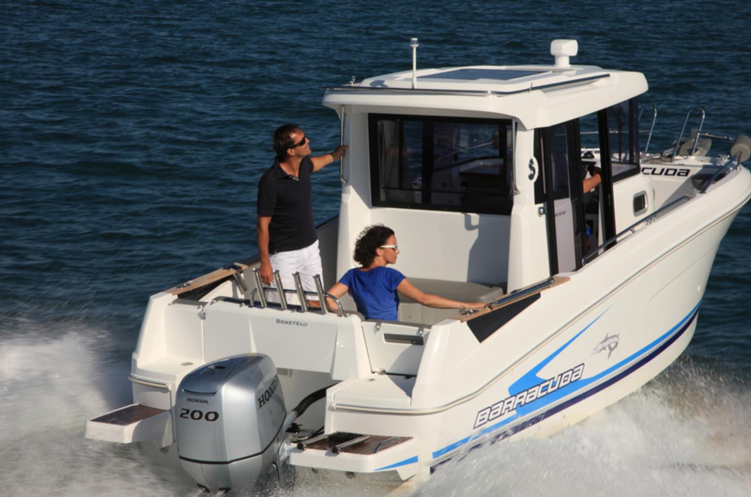 Lancé en septembre dernier, le Barracuda 7 vient renforcer la gamme Barracuda de Bénéteau. Son grand frère, le Barracuda 9, a rencontré un vif succès tant du côté des fjords d’Europe du Nord que sur les côtes méditerranéennes, américaines et pacifiques, grâce à sa polyvalence qui en fait également un hors-bord de ballade confortable. Cette nouvelle unité devrait marcher sur ses pas. Carène planante dessinée spécifiquement pour ce modèle, étrave tulipée, timonerie spacieuse, plan de pont, intelligent, le Barracuda 7 peut monter jusqu’à 25 nœuds en vitesse de pointe. L’idéal pour se déplacer au gré des bancs de poissons ou s’échapper quelques heures pour explorer les criques sauvages. Le bateau est d’ailleurs disponible en version pêche ou en version bien être pour un transport rapide et confortable.