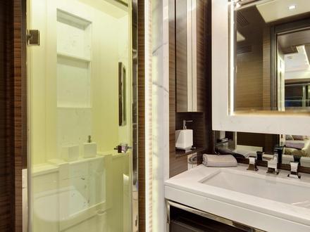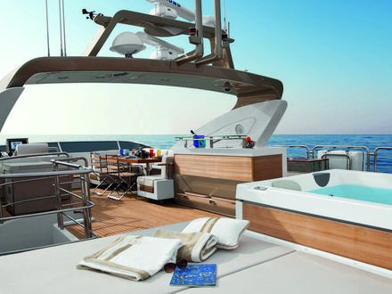Très spacieux, le bateau, qui dispose d’une suite propriétaire et de trois cabines invités, fait également la part belle à l’intimité. Chaque espace est clairement séparé des autres, afin de permettre à chacun de s’isoler s’il le souhaite ou de se déplacer dans le bateau sans déranger les autres passagers . D’ailleurs, les espaces propriétaires, invités et équipage sont bien distincts. La suite propriétaire, très spacieuse et lumineuse, dispose également d’une zone de spa. A bord, tout a été pensé pour offrir une grande sensation de confort et d’élégance. D’ailleurs, le choix des matériaux, des couleurs, du cuir ou encore des équipements est entièrement laissé libre afin de répondre au mieux aux attentes de chaque propriétaire. Elégant, moderne et luxueux, le Grande 120 SL, qui allie le style italien à la créativité d’Azimut et de son propriétaire, est également rapide et marin. En effet, le bateau peut monter jusqu’à 36 à 40 nœuds, en fonction de la configuration choisie par le propriétaire.
