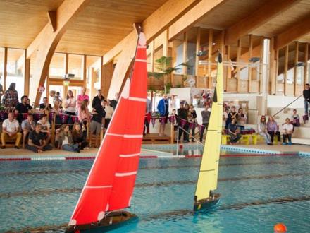Le Yacht Club de Gstaad a célébré son 15e anniversaire en organisant un événement original : une compétition de ski suivie par une régate de bateaux radiocommandés dans une piscine semi olympique.