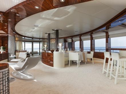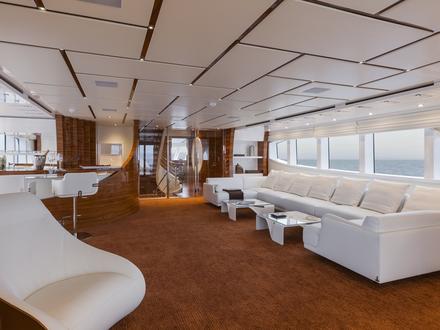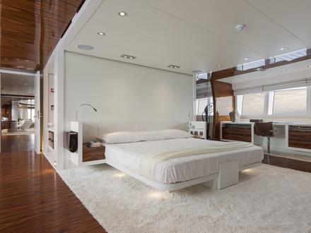 Seuls les meilleurs matériaux ont été utilisés pour la réalisation de ce yacht qui doit ses lignes à l’architecte naval néerlandais Frank Mulder et son design intérieur aux architectes de la société Art Line Interiors. Grâce à sa nouvelle architecture et aux techniques de construction utilisées, le volume intérieur du yacht est supérieur à celui de nombreux autres bateaux de la même taille. Ses six cabines accueillent en tout confort 12 passagers dans une atmosphère zen où le blanc domine. Ses ponts arrière et supérieurs sont spacieux, et permettent au propriétaire et à ses invités de profiter de moments de détente au soleil. Il faudra tout de même débourser 27 M$ pour s’offrir ce petit bijou flottant.