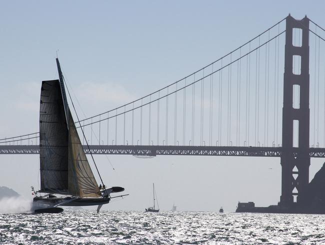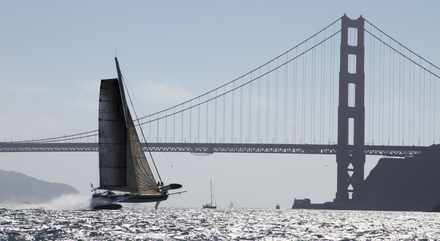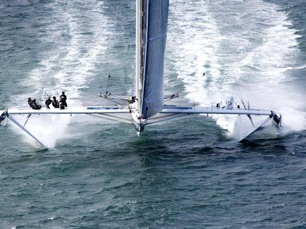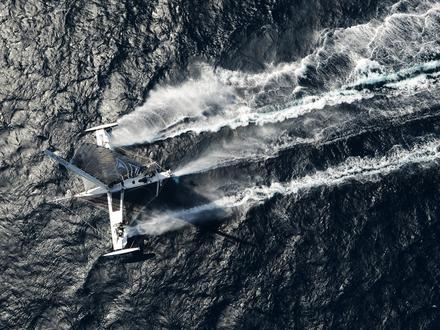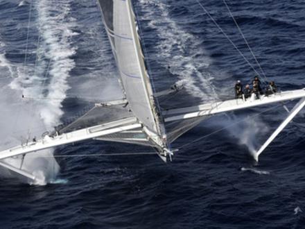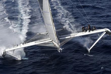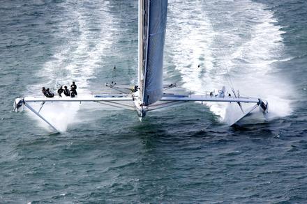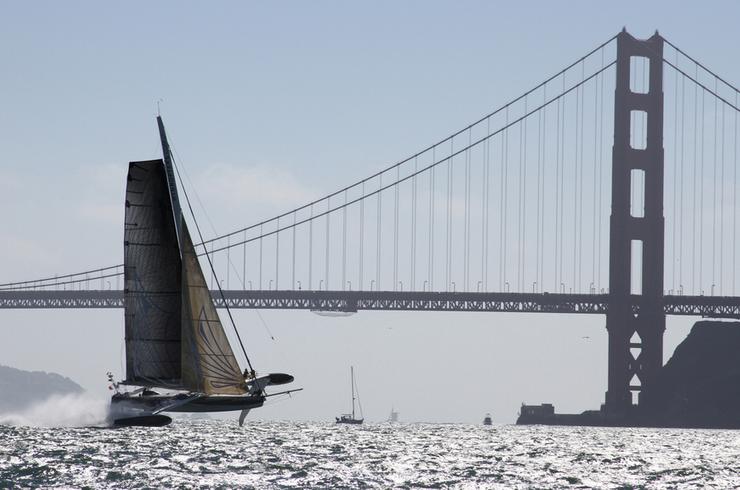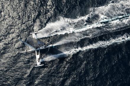 D’ici quelques semaines, Alain Thébault et ses équipiers Jean Le Cam, Yves Parlier et Jacques Vincent tenteront de battre le record de la Transpacifique entre Los Angeles et Honolulu sur un parcours de 2.200 milles, record détenu depuis 2006 par Oivier de Kersauzon (Geronimo). « Jean et Yves ont participé aux premiers vols de l’Hydroptère dans les années 90. On a essuyé les plâtres ensemble et vécu des moments inoubliables, rappelle Alain Thébault. Jacques Vincent m’a rejoint en 2005 et nous avons escaladé la barrière des 50 nœuds ensemble. Son touché de barre est impressionnant ». Actuellement basé à Alameda, à l’Est de la Baie de San Francisco, le bateau a été gruté à terre le 15 avril dernier afin de subir un check-up complet avant d’être remis à l’eau début mai, puis convoyé vers Los Angeles où il se mettra en stand-by à partir de fin mai pour la tentative de record. Ce convoyage permettra de tester la mise au point technique du bateau. L’équipage s’entraînera au large de Los Angeles en attendant la meilleure fenêtre météo pour s’élancer. « Au mois de juin, la position de l’anticyclone du Pacifique est idéale car il offre la route la plus directe vers Hawaii, commente Yves Parlier. Le vent thermique est bien actif à cette saison et nous permettra de quitter rapidement les côtes californiennes. Ensuite, nous surferons la longue joule du Pacifique au portant, avec quelques empannages à prévoir à l’approche de l’archipel d’Hawaii ».