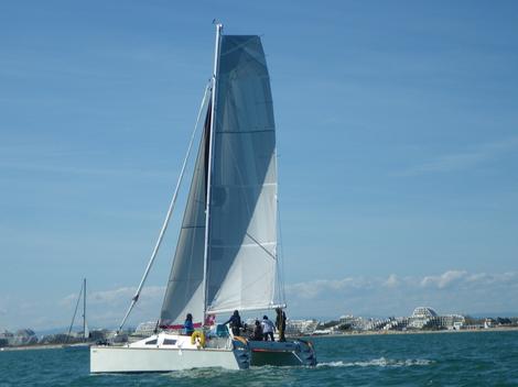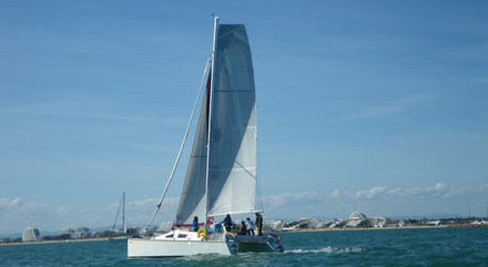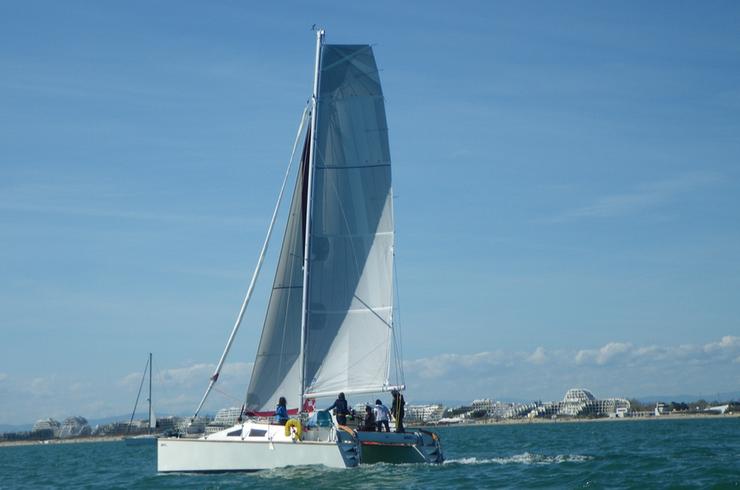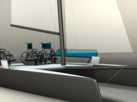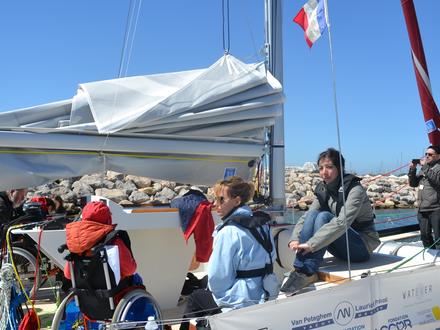 Invité par les organisateurs des Salons du Muticoque à la Grande-Motte, Voil’Avenir a pu présenter aux visiteurs le VA 32, un catamaran accessible aussi bien aux valides qu’aux personnes à mobilité réduite.