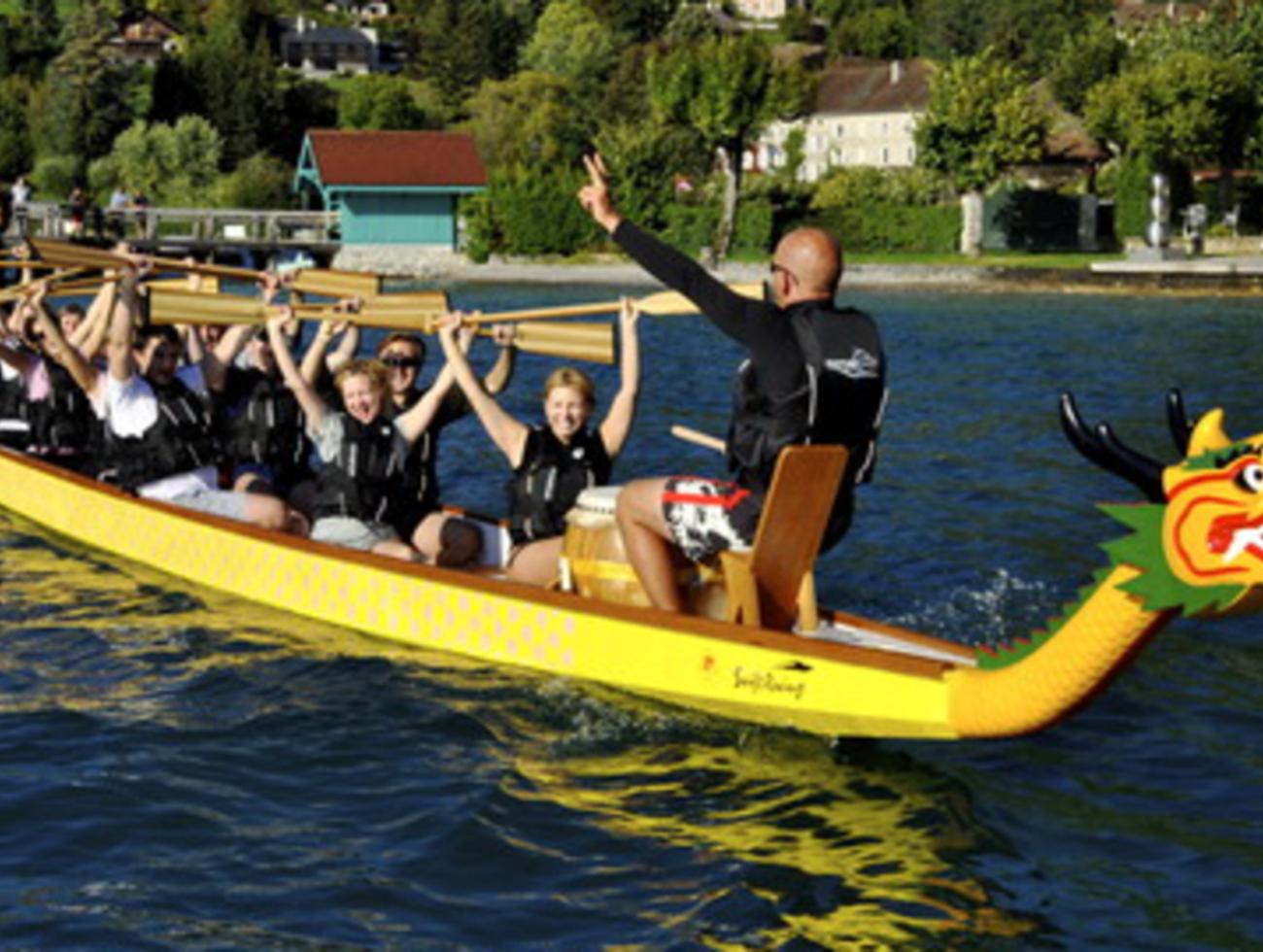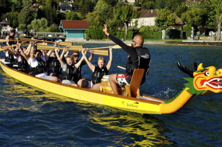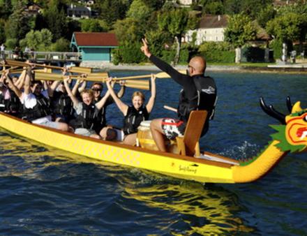 Embarcation propulsée à la pagaie et dirigée par un barreur et sa gouverne, le Dragon Boat accueille à son bord un barreur debout à l’arrière, deux rangées de huit pagayeurs et d’une personne au tambour à l’avant qui donne la cadence. Une vingtaine de clubs se sont montés en France. « Le Dragon Boat est une activité assez accessible vu la grande stabilité du bateau. La seule condition est de savoir nager. Par contre, cela demande un effort assez important car un Dragon Boat pèse 250 kg à vide et mesure 12 m de long pour 1,20 m de large, nous explique Sylvain Munier, responsable de l’équipe de Dragon Boat d’Annecy, qui travaille également chez Dragon Boat Attitude. La force, c’est le groupe. C’est l’équipe qui est mise en valeur et non l’individu ». En France, on recense quelque 500 pratiquants réguliers et 2.000 pratiquants occasionnels. Un Championnat de France comprenant trois dates est même organisé, ainsi que deux festivals, l’un à Annecy, l’autre à Divonne-les-Bains. Ce dernier réunit 30 équipes.