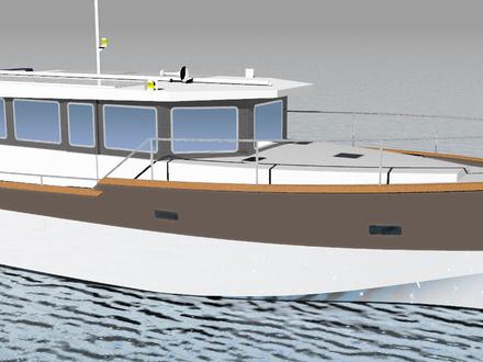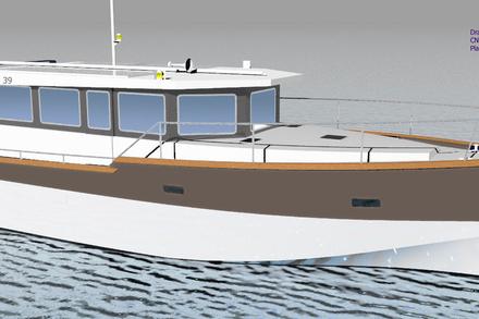 Le Dragon 39 est un trawler d'un nouveau genre, imaginé par le chantier CNTI pour pouvoir naviguer de l’océan Atlantique à la Méditerranée en passant par le canal du Midi, un parcours de rêve pour beaucoup de navigateurs. Ce bateau a également été conçu pour respecter au maximum l'environnement. Les œuvres vives sont signées par l'architecte naval Tanguy Le Bihan. L'étrave droite et les entrées d'eaux très progressives minimiseront la trainée, et donc la consommation. La propulsion du trawler sera assurée par un moteur électrique de 25 kW alimenté par un groupe électrogène diesel de même puissance. Cette architecture permettra d’obtenir une vitesse de croisière de 8 à 9 nœuds et une vitesse maximale de 11 nœuds. Mais surtout la consommation sera de 4 l/h à 8 nœuds (données constructeur). Le chantier propose aussi une option voile pour la navigation au portant. Le Dragon 39 mesure 11,50 m de long sur 2,50 m de large, de quoi offrir un espace à vivre suffisant. L'heureux équipage ne renoncera pas pour autant au confort : l'intérieur est clair, la timonerie se compose d'un carré repas à bâbord faisant face à une vraie cuisine aménagée. Le Dragon propose aussi deux grandes cabines, une salle d'eau avec douche et des cabinets de toilettes séparés. Le silence a bord a été privilégié avec une double isolation phonique. A l’extérieur, le pont reçoit un salon et un bain de soleil pour les belles journées au mouillage. Pour la navigation sur les canaux, le tirant d’air est limité à 2,60 m. Une porte latérale, proche du poste de pilotage, facilite l’accès pour les manœuvres d’écluse. Tout est prévu.