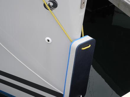 Pas très répandu mais qui peut s’avérer pratique lorsqu’il y a peu d’espace entre les bateaux. Il peut également servir de coussin à bord. A noter une variante avec des marches qui facilitent l’accès à bord. Fabriqué en polyéthylène à cellules fermées semi-rigides, il offre un rangement facile. Il faut éviter de les utiliser pour un hivernage, avec le temps, le polyéthylène a tendance à dépolir le gelcoat.