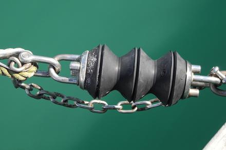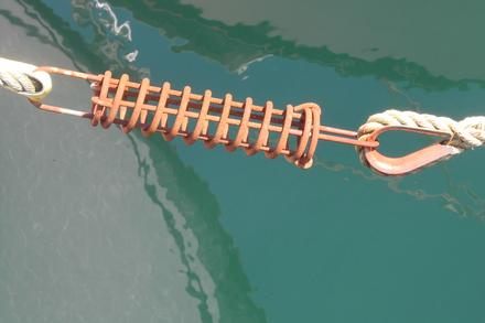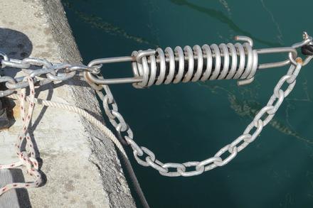 Les cordages spécifiques amarrage ont beau être souples et élastiques, il est conseillé de les munir d’amortisseurs lorsque le bateau hiverne dans un port. Différents modèles sont proposés en caoutchouc et métalliques. Celui en caoutchouc est simple à mettre en place. Bien que traité anti UV, il est bon de le vérifier régulièrement. En cas de rupture, cela n’entraîne pas le désamarrage du bateau. Les amortisseurs métalliques sont en acier cadmié ou inox. L’avantage de l’inox est qu’il ne rouille pas. Ce type d’amortisseur doit être assuré pour éviter qu’en cas de rupture, le bateau ne soit plus amarré.