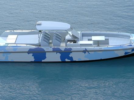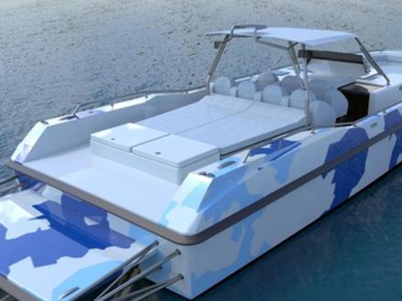 Connu pour ses yachts à moteur, Couach présentera au Festival de la Plaisance de Cannes le Hornet, un day-boat de 13 mètres ultra rapide, haut en technicité et personnalité. Un segment sur lequel on n’attendait pas le chantier, mais qui est légitime, sachant que Couach équipe les douanes et marines dans le monde entier depuis des décennies sous le nom de Plascoa. Afin de donner naissance à cette nouvelle unité, les équipes de Couach associées au designer Franck Reynaud se sont basés sur le Plascoa 1300 FIC, qui a pour vocation de protéger les côtes, et l’ont transformé en un bateau de plaisance technologique idéal pour les amateurs de sensations fortes, proposant les mêmes équipements que les bateaux militaires. La carène en « V » profond permet au bateau d’afficher un comportement marin hors du commun même à de très hautes vitesses. Négociant parfaitement les courbes sans gîter, le Hornet peut monter à plus de 50 nœuds sans taper sur la vague. Sur le plan esthétique, l’équipe de design a joué jusqu’au bout la carte du « military boat », avec un parti-pris résolument technologique pour un bateau très sécuritaire. A la différence du 1300 FIC qui affiche une cabine en composites, le Hornet est doté d’un hard-top tubulaire en inox micro-billé qui lui confère un rendu très technologique. Un style renforcé par des détails tels que des soudures apparentes non polies. Autre effet de style : le bain de soleil arrière montré sur un ensemble tubulaire inox, qui tranche avec les habituels bains de soleil en composites.